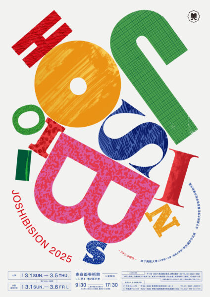 大学院・大学・短期大学部から選抜された学生による作品展。タイトルの「JOSHIBISION」は、JOSHIBI×EXHIBITION×VISIONをつないだ造語です。今を生きる、等身大の学生たちのさまざまな視点が集まり、ともに未来を見つめていこうというメッセージが込められています。ひとりひとりの明日を、豊かな創造力で切り開く姿を、多様な表現のひとつひとつから感じ取っていただきたいと思います。工芸専攻からは2名の作品を出展します。